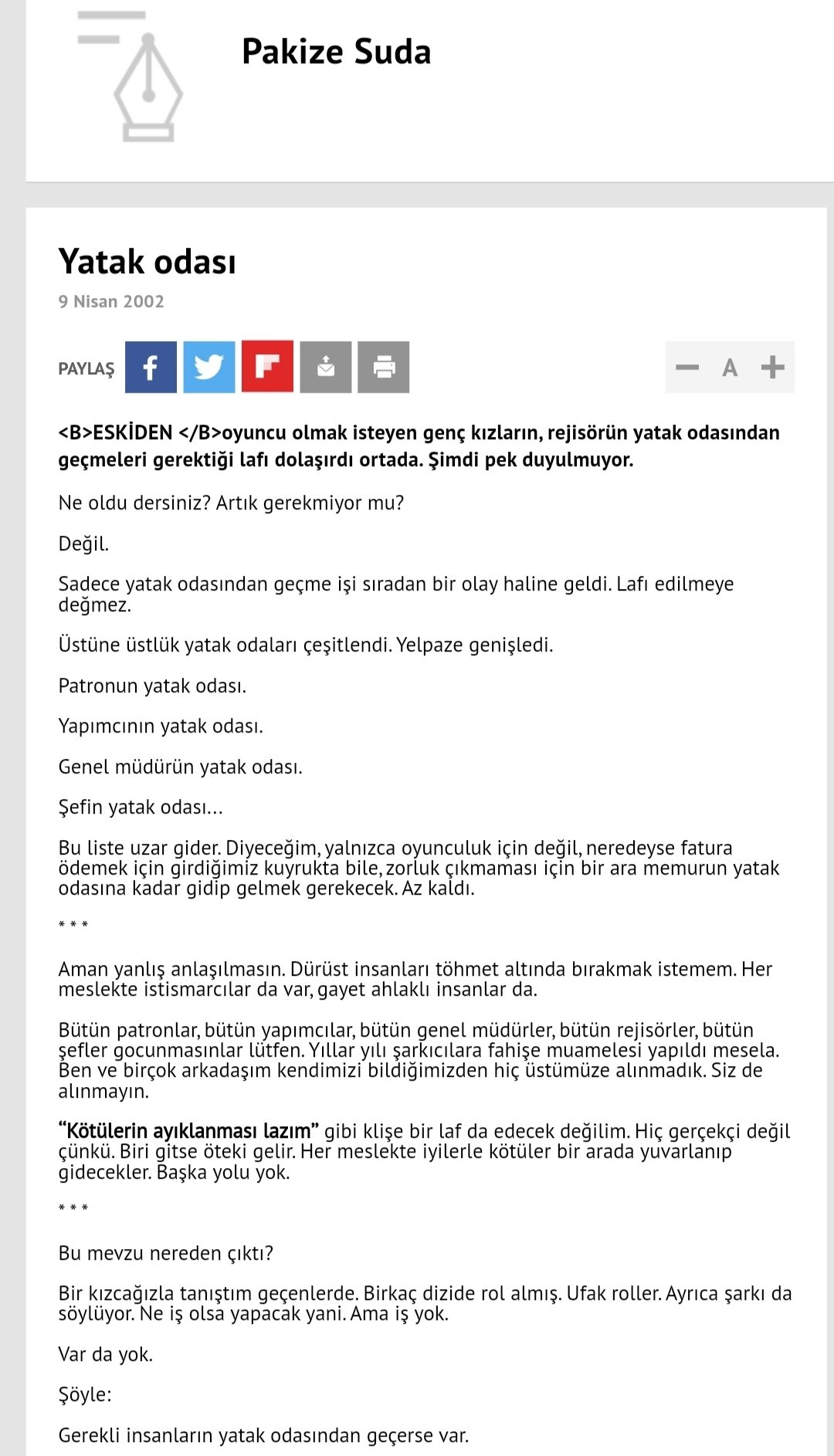 Cubbeli Ahmet Hoca On Twitter Bu Konuyu Daha Iyi Anlamak Isteyenlere Pakize Suda Hanim Efendi Nin Yatak Odasi Basligi Altinda Hurriyet Gazetesi Nde Kaleme Aldigi 9 Nisan 2002 Tarihli Yazisini Okumalarini Oneririm Yazinin Linki
